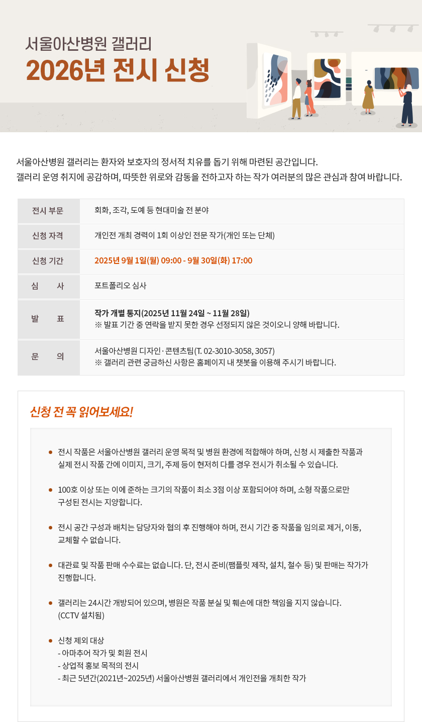 서울아산병원 갤러리 2026년 전시 신청